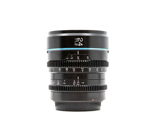 The Sirui 24mm T1.2 Nightwalker is a Super 35 cine lens designed for the Canon RF mount. It is a fast lens, with a maximum aperture of T1.2, making it ideal for low-light shooting. It also has a close focus distance of 30cm, making it versatile for a variety of shooting scenarios.